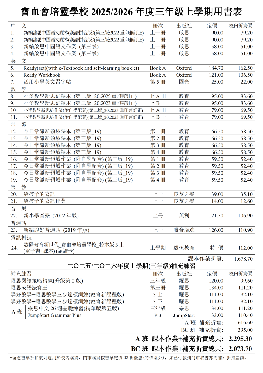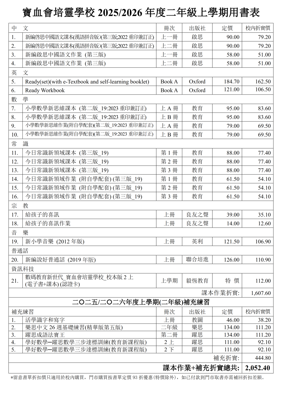 2025-2026年度 上學期書單
